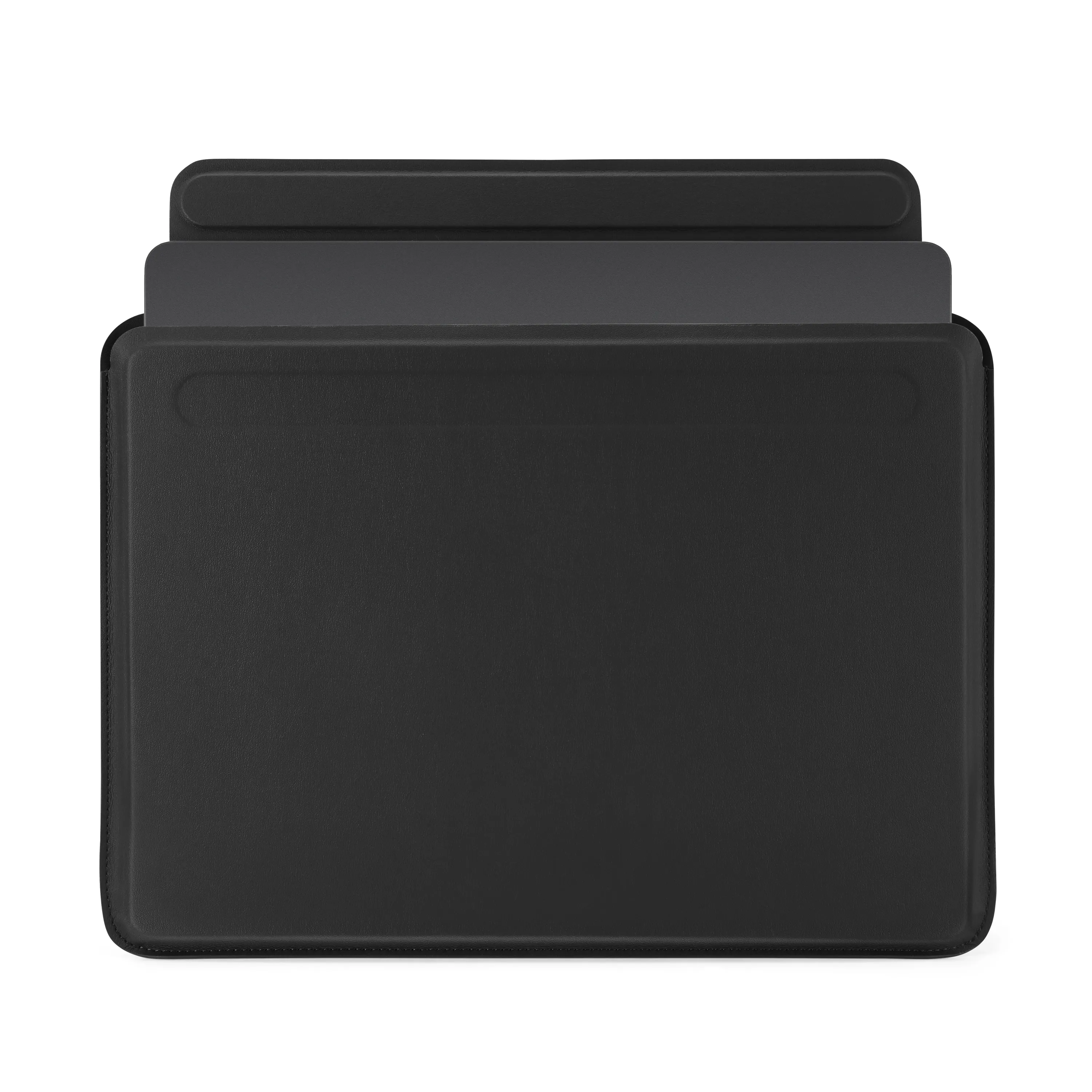 "Ultrasmalt fodral för MacBook 13 och 14 med utsida i veganskt läder och mjukt mikrofiberfoder som skyddar mot repor och stötar. Magnetisk stängning ger säker förvaring och snabb åtkomst."